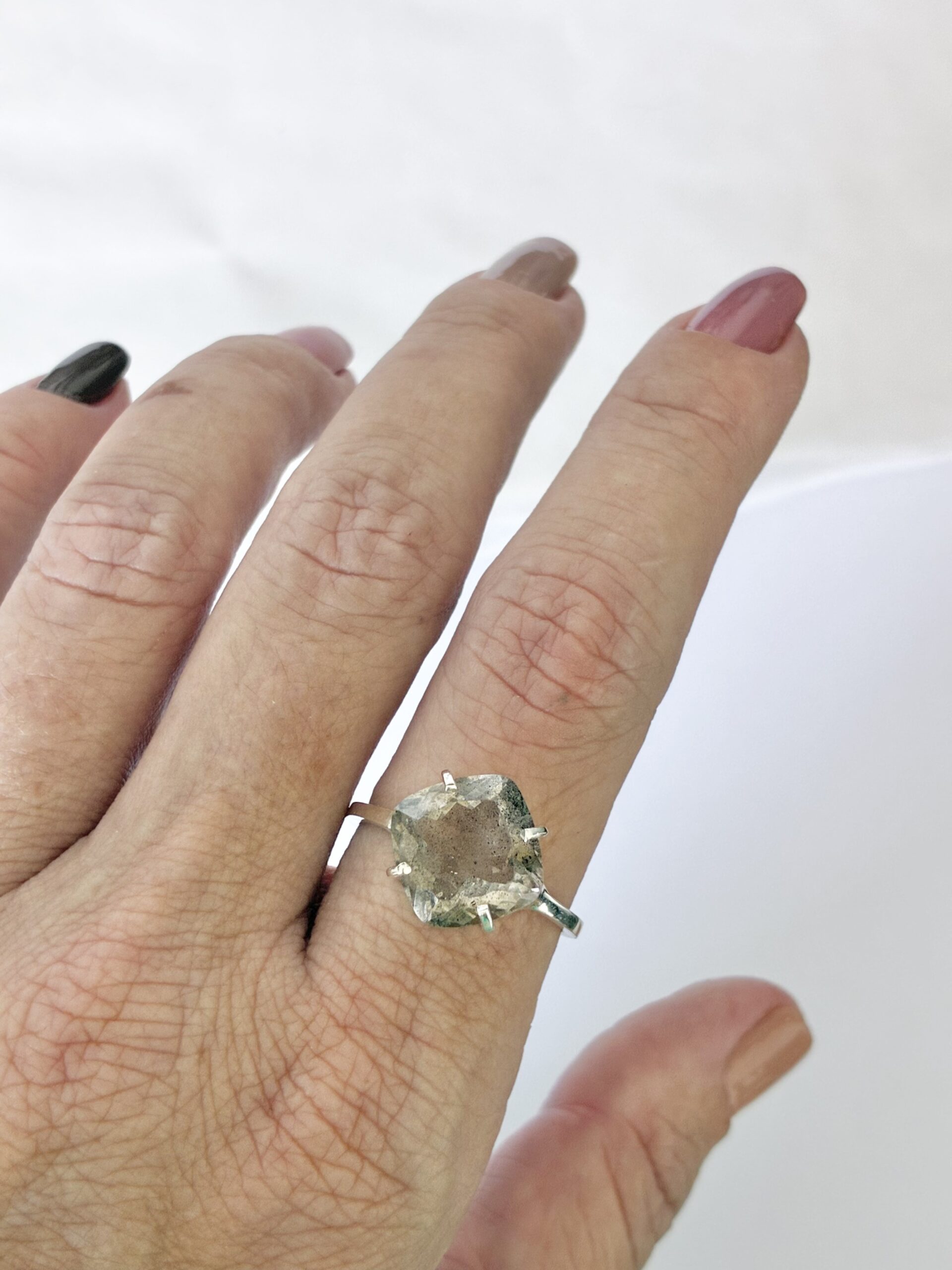 Dimensões: Pedra: 1,2 cm. / Aro em fio quadrado 1.5 mm.